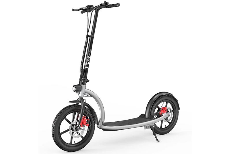“Our VE1 Pro electric scooter is the first big wheel electric scooter.Its large 16-inch wheels and wide standing base make balancing easy and riding comfort.23 MPH max speed and 31 miles max range make it suitable for advanced commute & play.Equipped with standard bicycle size 16” pneumatic tube tires, Hiboy VE1 Pro Electric Scooter can provide enhanced traction, stability and a smoother ride.Hiboy electric scooters with a max 500W brushless motor ensure stable power output. Intelligent power system would automatically reduce your speed to protect and maintain itself.Front and rear disc brake systems provide better stability while your riding.The design of headlights and taillights allows you to drive safely at night.The overall shape and lightweight design of the scooter and the 16-inch tire design of the e-bike make the VE1 Pro more comfortable to ride for long periods of time, bringing a new commuting experience.Boasting a diverse array of features, from a robust motor and flexible riding modes to its portable design and advanced safety enhancements, Hiboy VE1 Pro reigns supreme as the pinnacle choice in today’s market.Features:23 MPH Max SpeedUp to 31 Miles Max Range16 inch pneumatic tires3 Speed Modes‎Front Braking, Rear BrakingLED headlight + taillight48V 10AhMax Load 220 lbsPower, performance, and precision—experience the VE1 Pro like never before! “