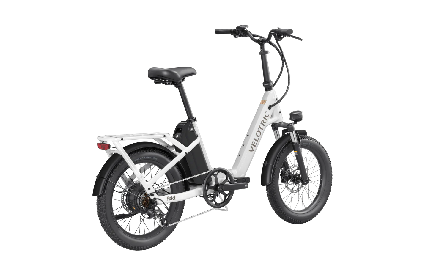 “Power that Beats the CompetitionThe high-performance motor generates 750W, and delivers 70Nm torque, surpassing most similar models for powerful acceleration and climbing ability.20% Lower Step-Through DesignThe 15.75 inch standover height is 20% lower than the competition. Easily hop on and off making it ideal for those with knee or hip concerns, and friendly to elderly riders.More Range, More AdventuresThe 608Wh battery with high-quality cells ensures up to 55 miles of range for longer adventures.Easy to Fold, Easy to StoreIn 3 simple steps, the Fold 1 fits easily inside the trunk of any car, SUV closet or even boat!A BIKE BUILT FOR YOU Accessorize Your Ride: The Fold 1 is compatible with a variety of accessories, allowing you to customize your bike to suit your needs.3-Step Folding: Simply unfasten the quick release to lower the stem, tuck in the pedals, and then use the quick release again to collapse the frame.Fits All Riders: The Fold 1 accommodates riders from 4’9″ to 6’5” and supports up to 440 lbs of payload.YOUR SAFETY MATTERS Reliable Brakes: 180mm Hydraulic Disc Brakes ensure strong braking power, allowing you to speed up with confidence and stop precisely when needed.Rain Ready: An IPX7-rated battery with UL2271 certification and IPX6 waterproof bike components let you ride in heavy rain or any outdoor environment without worry.Reinforced Durability: The Fold 1 e-bike features a reinforced frame that surpasses ISO standards, supporting heavy-duty riding with a maximum payload of 440 lbs.Easiest Folding Imaginable “Have An Ebike But Got Nowhere To Store It? This Bike Is the Easiest-Ever Choice.Fits into any car trunk”My Friends Were So Impressed When I Opened My Trunk And Took Out My Fold 1. Being Able To Ride Around During A Road Trip Is AWESOME.Great power, safe battery “With Its Fat Tires & Amazing Power System, I Basically Ride Wherewver I Want. Not To Mention I Can Speed Up To 28MPH!”Feature:Max Range – 55 MilesTop Speed – 28 MPHMax Load – 440 LbsBattery – 608 WhMotor – 750W/70NmFolding Size – 38”L x 19”W x 33”H”Fold, ride, and explore with the Velotric Fold 1—compact, powerful, and ready to go wherever life takes you!””