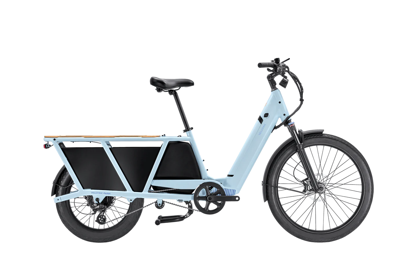 “Haul Everything from Cargo to Those You Love Velotric Packer 1 was made to haul it all. Carry up to 440 lbs comfortably with its plush saddle with 176 lbs rear cargo carry capacity (perfect for carrying everything from adventure gear to kids), hydraulic suspension with 80 mm of travel so you can carry it all with ease and comfort.Customize Your Perfect Bike With a host of accessories, you can customize the perfect configuration for the Velotric Packer 1, so that whether it’s a ride with the kids or a weekend adventure, you and your bike are ready to go!Velopower H75 More Power for More Cargo Powered by our proprietary Velopower H75 Drive System, ensuring the maximum efficiency and power. Ride up to 52 miles on pedal-assisted fun, up to 25 MPH (unlocked) with our 750W motor.Safety First Velotric bikes are always built with safety in mind. Velotric Packer 1 goes through a series of stringent safety tests and is IPX6 rated, ISO4210 compliant, UL 2271 Recognized and UL 2849 Certified.FeaturesMotor – 750WMax Load – 440 LbsMax Range – 52 MilesTop Speed – 25 MPH”Haul it all with ease—the Velotric Packer 1 Ebike delivers power, versatility, and style for your everyday adventures!” “